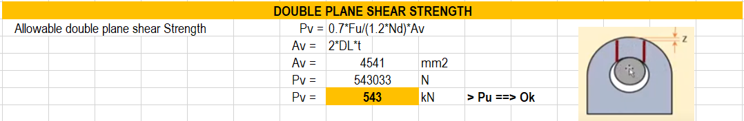 Step pertama; menentukan ukuran lifting lug berdasarkan desain standard pada table satu dimana ukuran shackle yang dipilih adalah SWL 35 ton (> 28.9 ton sling load) dengan mutu baja plate yang digunakan adalah ASTM A36 dengan tegangan leleh fy= 240 kN/m2.