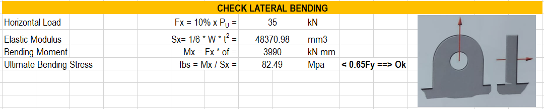 Step Keenam; Melakukan pengecekan kemungkinan gagal bending (lateral bending failure) karena lateral load yang dapat diamil 10% dari sling load (Pu).