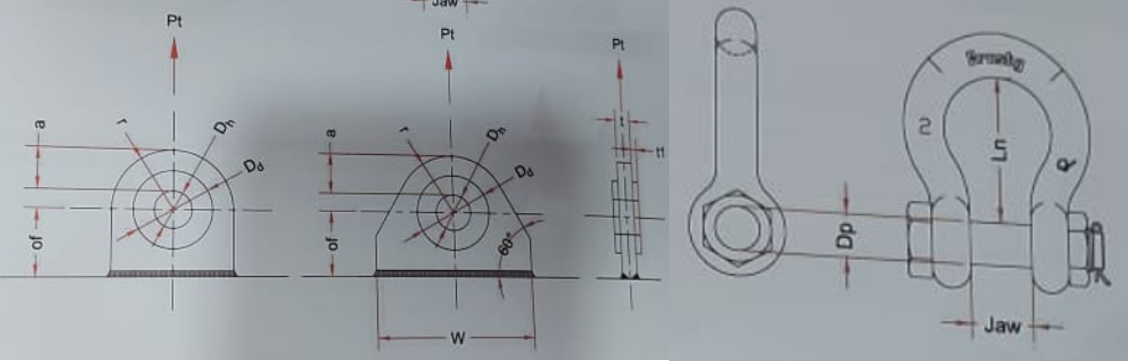 - Ketebalan plate dari lifting lug tidak boleh kurang dari 75% lebar dalam (inside width) dari mulut shackle.